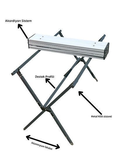 • Plastik zincir ve kutu profil sistem: Zincir bağlantı ve kutu profil yapısı, ağır yüklerde bile masaüstü profillerinin esnemesini minimuma indirir (örneğin karpuz koyup kessen bile kullanımda sıkıntı çıkarmaz).